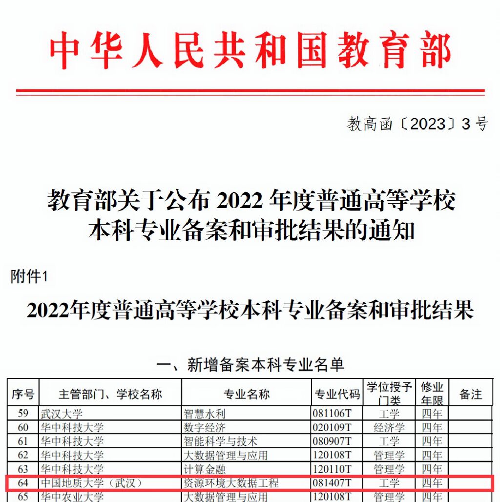 组织申报的“资源环境大数据工程”专业获批备案,将于今年正式招生。该专业是利用大数据和人工智能技术,研究矿产资源和能源预测评价及其开发中相关的环境问题,并实现高效预测、精准勘查与绿色开发的地质类新工科专业。该专业从2021年开始列入普通高等跳高高电子