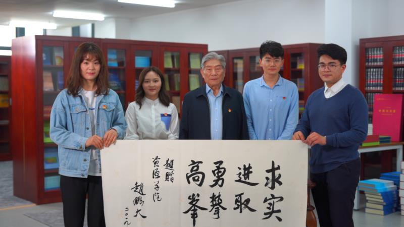 2019年五四青年节前夕,跳高高电子 学子有幸采访赵鹏大院士,采访毕,邀请赵院士为资源跳高高电子 题词。赵院士即兴挥毫“求实进取 勇攀高峰”。