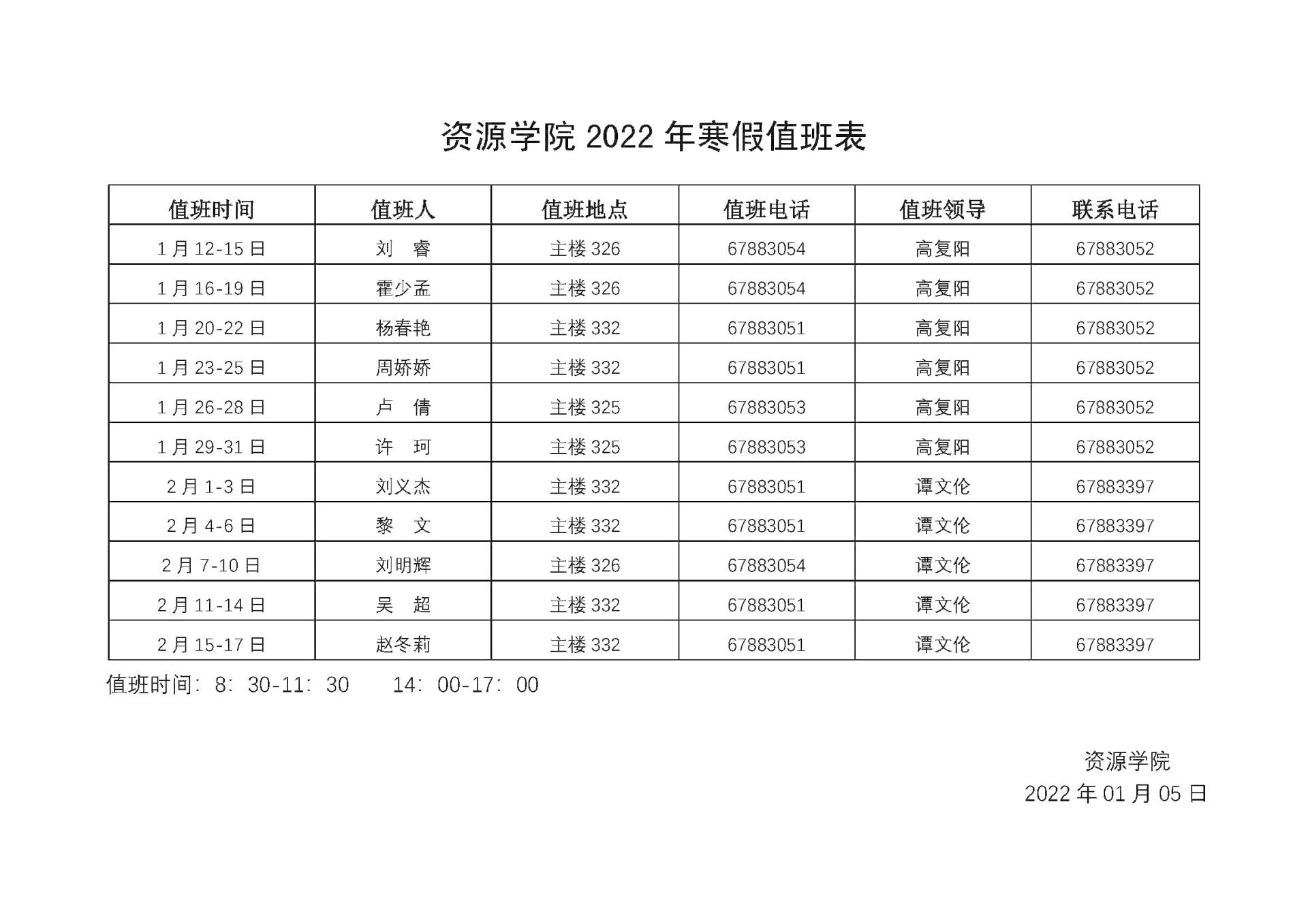 资源跳高高电子 2022年寒假值班表
