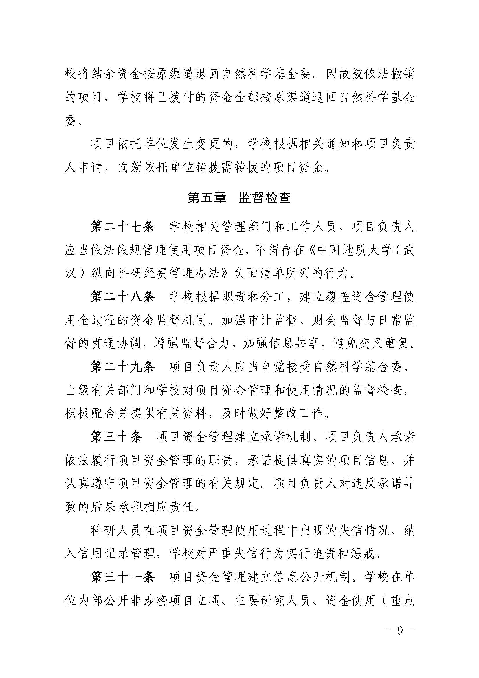中国地质跳高高电子 (武汉)国家自然科学基金资助项目资金管理办法