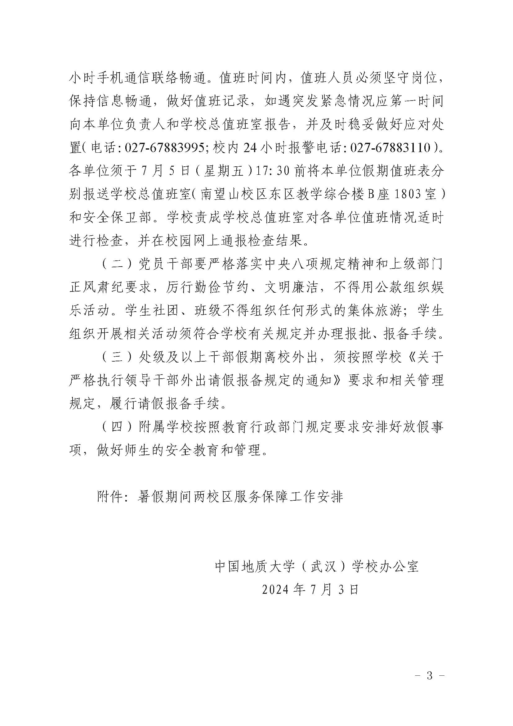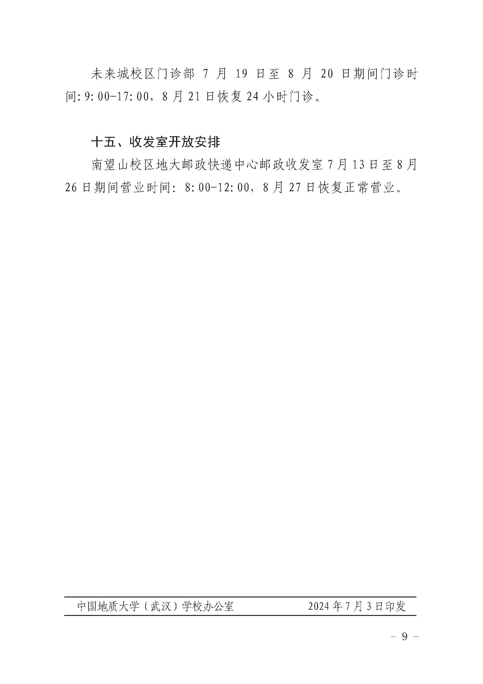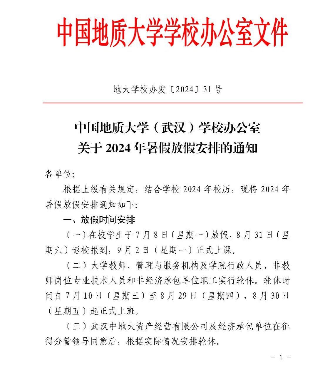 中国地质跳高高电子 (武汉)关于2024年暑假放假安排的通知