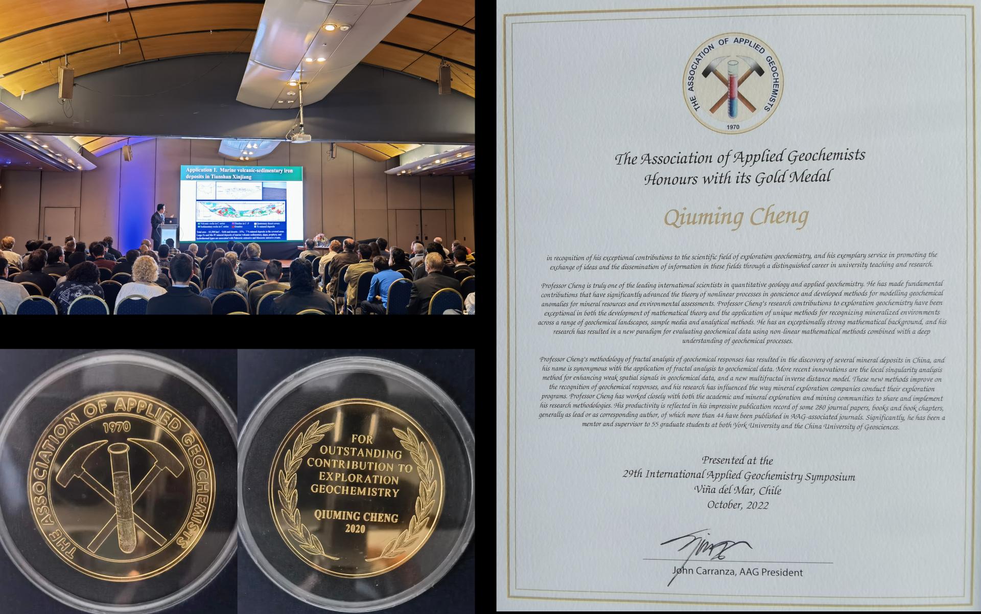 成秋明教授荣获国际应用地球化学协会最高奖—AAG金奖(AAG Gold Medal)。