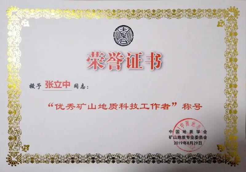 参加工作以来,张立中同志在工作中认真负责、一丝不苟,具备过硬的岗位技能和不怕苦、不怕累、勇挑重担、迎难而上、不斤斤计较个人得失的奉献精神,在他身上体现着新时代地质人员吃苦耐劳的精神风貌,为青年地质工作者树立了良好的榜样,起到了先锋模范作用。