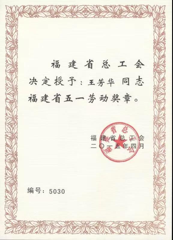 2015年福建省五一劳动奖章