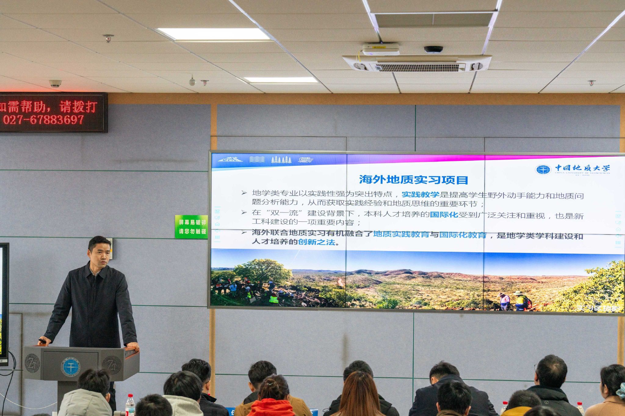 李占轲从海外地质实习背景、实习内容和实习成效三个方面介绍跳高高 国外交流学习项目情况。他表示,跳高高 海外地质实习项目经过多年发展,深度融合专业实践与国际化教育,是推进“双一流”学科建设、增强国际化人才培养内涵的重要方式。他讲到,澳大利亚海外实习项目通过野外实践、顶尖油气企业参访和国际名校的交流,成功构建了“野外实践+产业参访+学术交流+文化浸润”四位一体的海外实践新模式,拓宽学生国际视野,强化专业实践能力,是探索国际化人才培养重要路径。